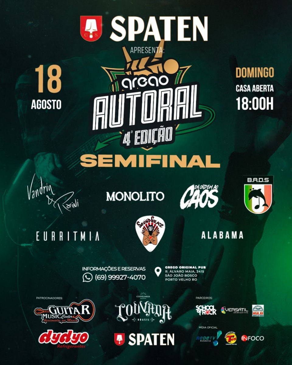 Domingo, casa aberta a partir de 18h com o maior concurso de bandas autorais da região! Serão 7 domingos de uma disputa eletrizante e mais de 20k em prêmios!!!