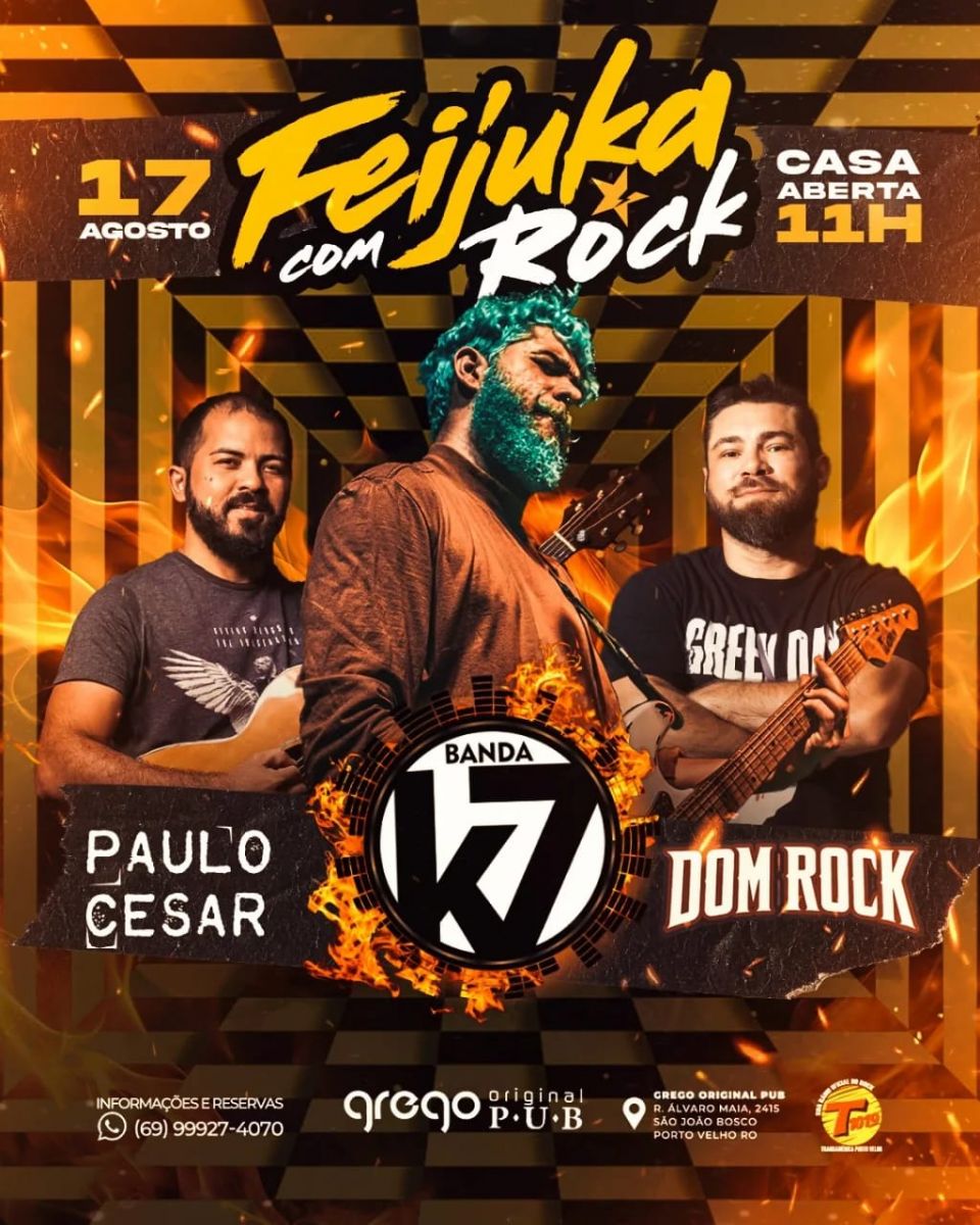 Se você curte uma balada no sábado a tarde, precisa conhecer a feijuka com rock do Grego Original: são 3 bandas garantindo a festa das 11h as 18h.