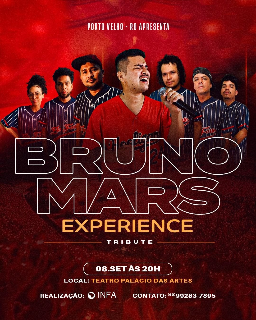Neste domingo (08), Porto Velho receberá um espetáculo imperdível. O - Bruno Mars Experience - com início marcado para às 20 horas, o evento acontecerá no Teatro Estadual Palácio das Artes.