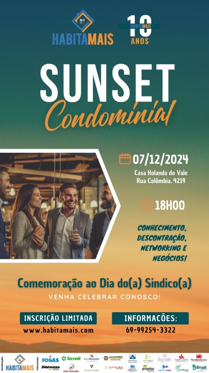 A administradora de condomínios Habitamais vai encerar a celebração de seus dez anos de atuação no dia 7 de dezembro. O evento Sunset que celebrará também o Dia do Síndico acontecerá na Casa Holanda do Vale.