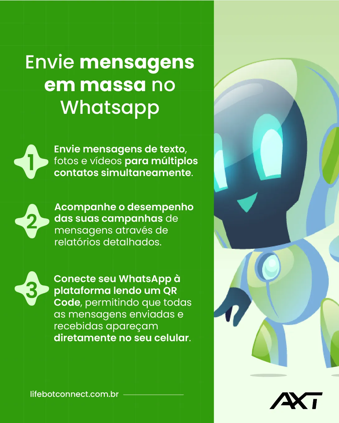 O WhatsApp se tornou um dos canais mais poderosos para empresas se comunicarem com seus clientes e prospects. No entanto, a tarefa de enviar mensagens em massa manualmente pode ser demorada e ineficiente, especialmente quando se trata de alcançar um grande número de contatos ou grupos. Pensando nisso, o LifeBotConnect surge como uma solução inovadora e automatizada, oferecendo uma forma simples e eficaz de otimizar suas campanhas de marketing no WhatsApp.