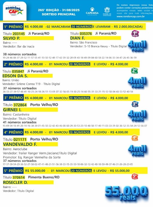 Neste domingo tem 300.000 reais em prêmios no RondônCAP e o título é dupla chance de ganhar!