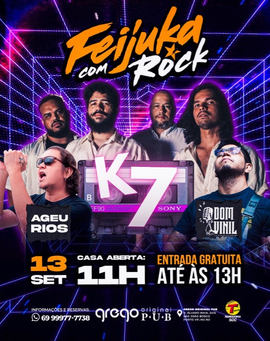 Para você que curte uma balada no fim de tarde, a fejuka com rock é uma excelente opção para o seu sábado. Casa aberta a partir das 11 horas, com delicioso almoço e logo após, a balada mais rock and roll de Porto Velho começa. É uma programação completa, você pode inclusive curtir em família, a casa conta com espaço kids com monitor infantil sem curso adicional nenhum.