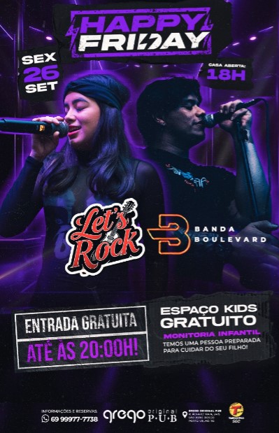 E para completar o clima, música ao vivo para embalar sua noite com o melhor do rock and roll. De apresentação musical essa semana, banda Lets Rock e banda Boulevard.