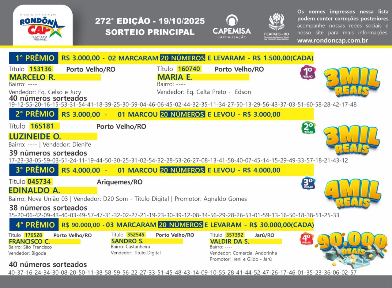 E neste domingo o RondônCAP vai sortear 110 mil reais em prêmios, é muito