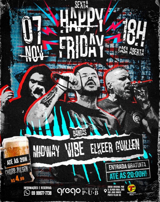 E para completar o clima, música ao vivo para embalar sua noite com o melhor do rock and roll. De apresentação musical essa semana, bandas Midway, Vibe e Elkeer Rock.
