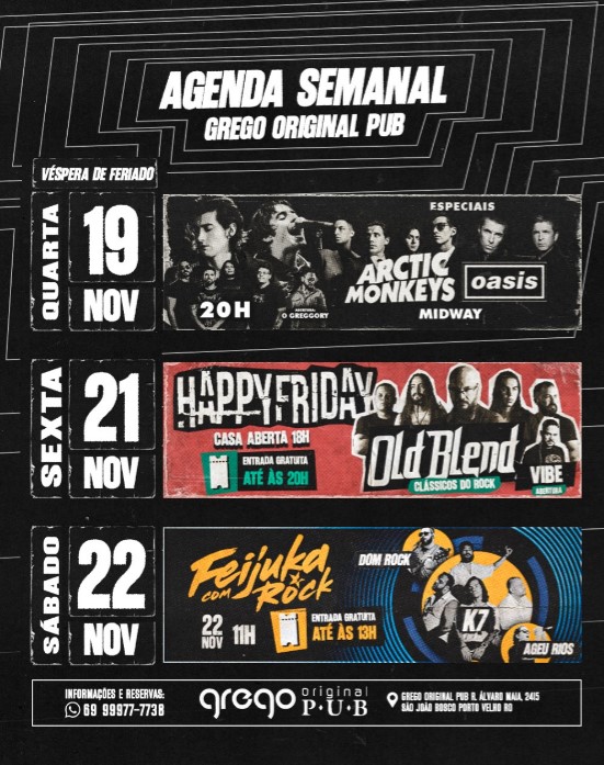O Grego Original Pub fica localizado na avenida Senador Álvaro Maia, 2415, São João Bosco, Porto Velho, Rondônia.