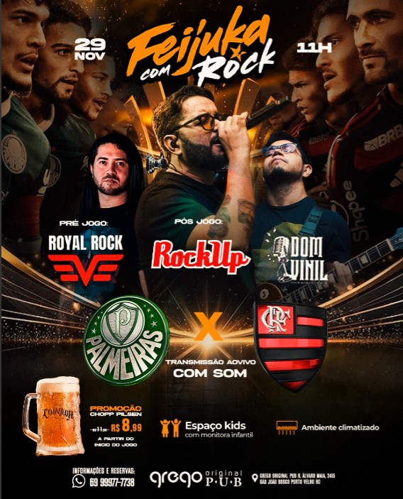 Para você que curte uma balada no fim de tarde, a fejuka com rock é uma excelente opção para o seu sábado. Casa aberta a partir das 11 horas, com delicioso almoço e logo após, a balada mais rock and roll de Porto Velho começa. É uma programação completa, você pode inclusive curtir em família, a casa conta com espaço kids com monitor infantil sem curso adicional nenhum.