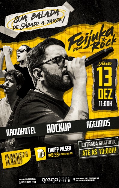 Para você que curte uma balada no fim de tarde, a fejuka com rock é uma excelente opção para o seu sábado.
