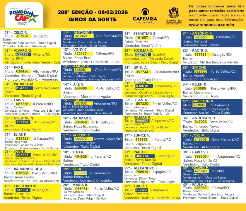 O RondonCAP Especial de Carnaval quer ver você pular de alegria! No 4º premio tem 110 mil reais em dinheiro para você fazer a festa e o titulo só 10 reais.