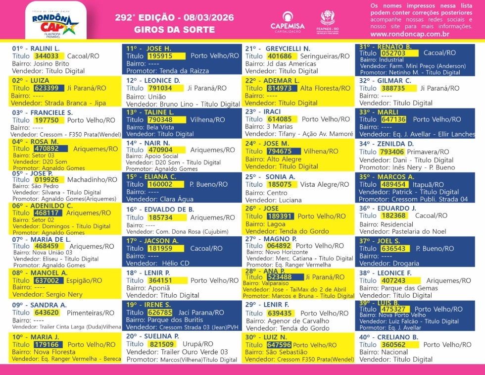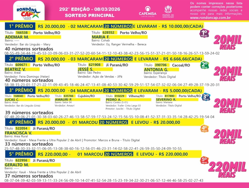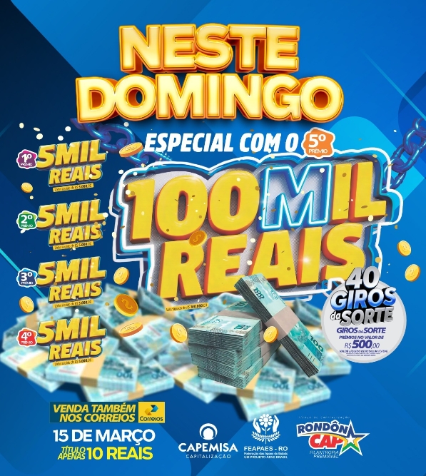 RondonCAP Especial com 100 mil reais no 5° prêmio e o título só 10 reais!
