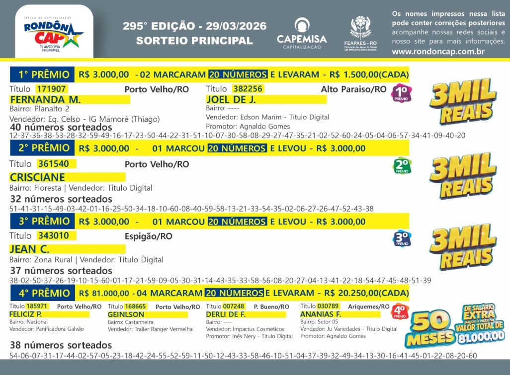 PÁSCOA: RondonCAP com 105 mil no 4° prêmio e o Titulo só 5 reais