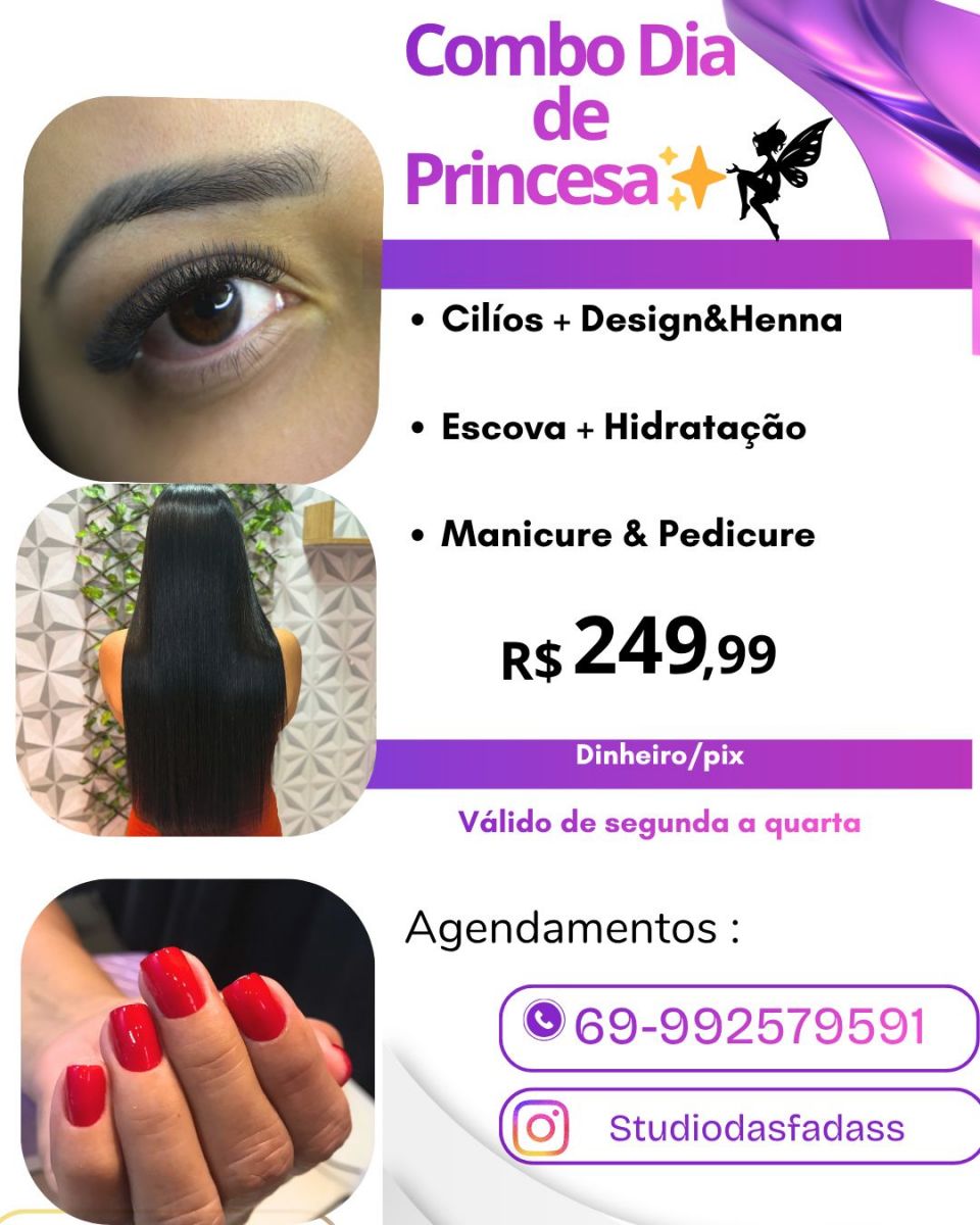 O Combo Dia de Princesa da Studio Fadas da Beleza está simplesmente imperdível, com um preço que cabe no seu bolso e um resultado que vai elevar sua autoestima e transformar seu visual.