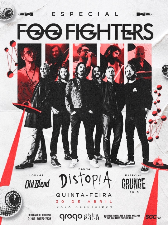 A abertura acontece na quinta-feira, 30 de abril, véspera de feriado, com uma noite dedicada ao grunge. O público poderá curtir o Especial Foo Fighters com a banda Distopia, além de um set especial com clássicos do movimento que marcou gerações. A casa abre às 20h, criando o clima perfeito para uma noite de nostalgia e energia no palco.