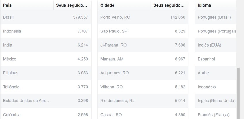 Facebook são 466.476 seguidores com cerca de 150 mil internautas só em Porto Velho.