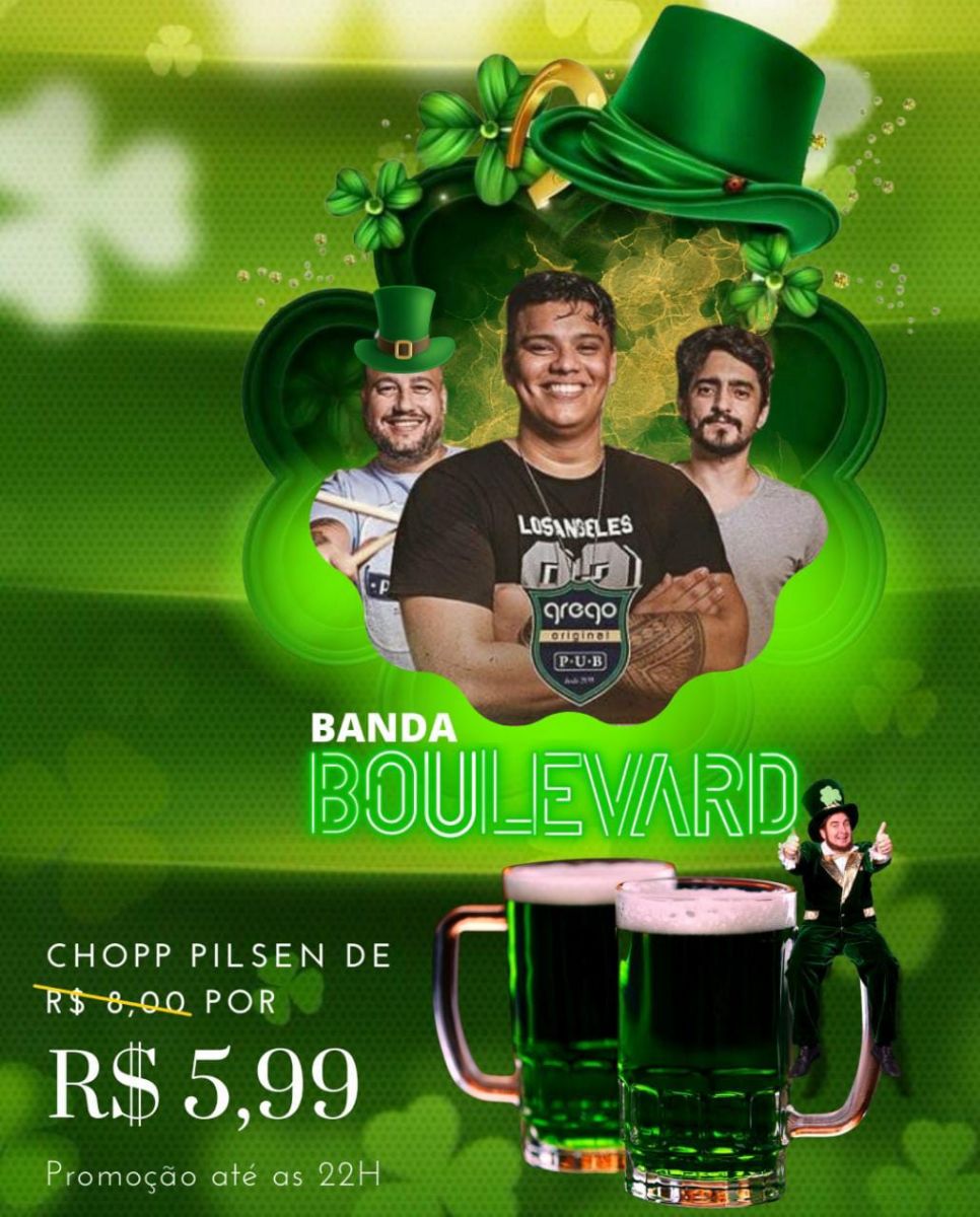 "Com promoções de petiscos e chopp, quero convidar você que é apreciador de uma boa cerveja gelada e curte um bom rock and roll, a vir para o nosso evento Happy Friday", disse o empresário Sinezio Tapajós, proprietário do tradicional Pub porto-velhense, o Grego Original, que nesta sexta-feira, dia 18, a partir das 17h, a festa será dedicado ao ST Patrick, o santo cervejeiro.