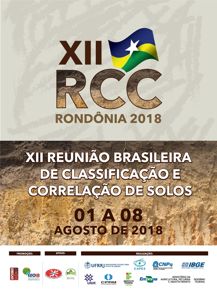 A 12ª Reunião Brasileira de Classificação e Correlação de Solos é promovida pela Sociedade Brasileira de Ciência do Solo (SBCS) e Congresso Mundial de Solos, sendo realizada pela Embrapa, Universidade Federal Rural do Rio de Janeiro (UFRRJ), CAPES, Conselho Nacional de Desenvolvimento Científico e Tecnológico (CNPq), Instituto Brasileiro de Geografia e Estatística (IBGE), Universidade Federal de Rondônia (Unir), Companhia de Pesquisa de Recursos Minerais (CPRM) e Instituto Federal de Rondônia (Ifro). Conta também com o apoio da Rical e TerrAs.