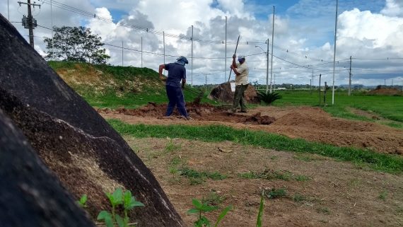 Um lago está sendo escavado e servirá como um viveiro para demonstração de peixes da região amazônica