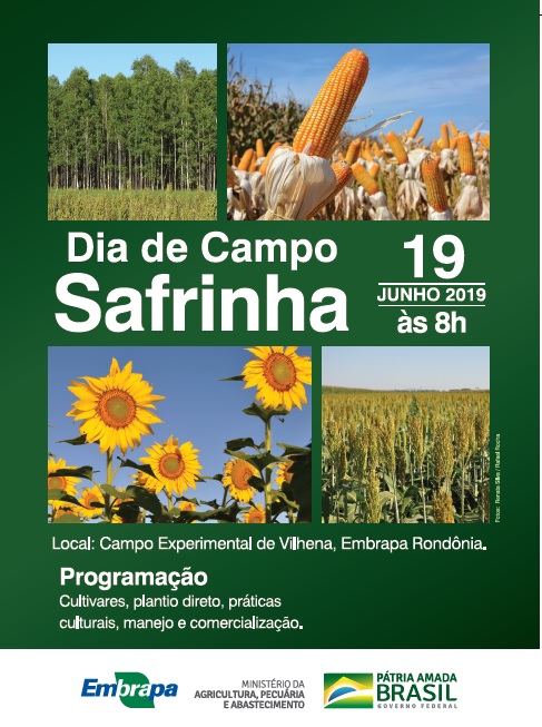 O Dia de Campo Safrinha 2019 é uma realização da Embrapa Rondônia e conta com a parceria Prefeitura Municipal de Vilhena, Conab, Central Agrícola, Bayer, FMC, Agrocat, Syngenta, Tratoron, Cropfield, Nufarm, Adama, Soesp, Ihara, Agroamazônia, Seed Corp, Biomatrix, Santa Helena, Limagrain, KWS, Nidera, Advanta, Nortox, Sempre e Rede ILPF.