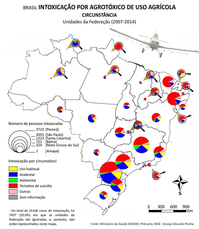 Mapa de intoxicação por agrotóxicos de uso agrícola (2007-2014)