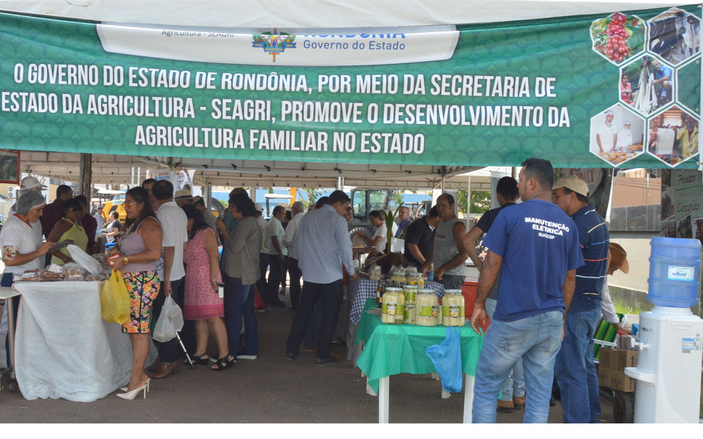 O estacionamento do Palácio Rio Madeira, na segunda-feira (4), apresentou uma grande exposição de máquinas e equipamentos agrícolas, e do lado das máquinas uma feira de produtos da agricultura familiar, com uma grande variedade de produtos frescos e processados, inclusive com uma ala inteira dedicada aos produtos da agroindústria familiar. Os produtores, orientados pela Emater-RO, trouxeram para expor produtos lácteos, embutidos e defumados, mel, doces e biscoitos, bebidas e uma variedade de produtos artesanais.