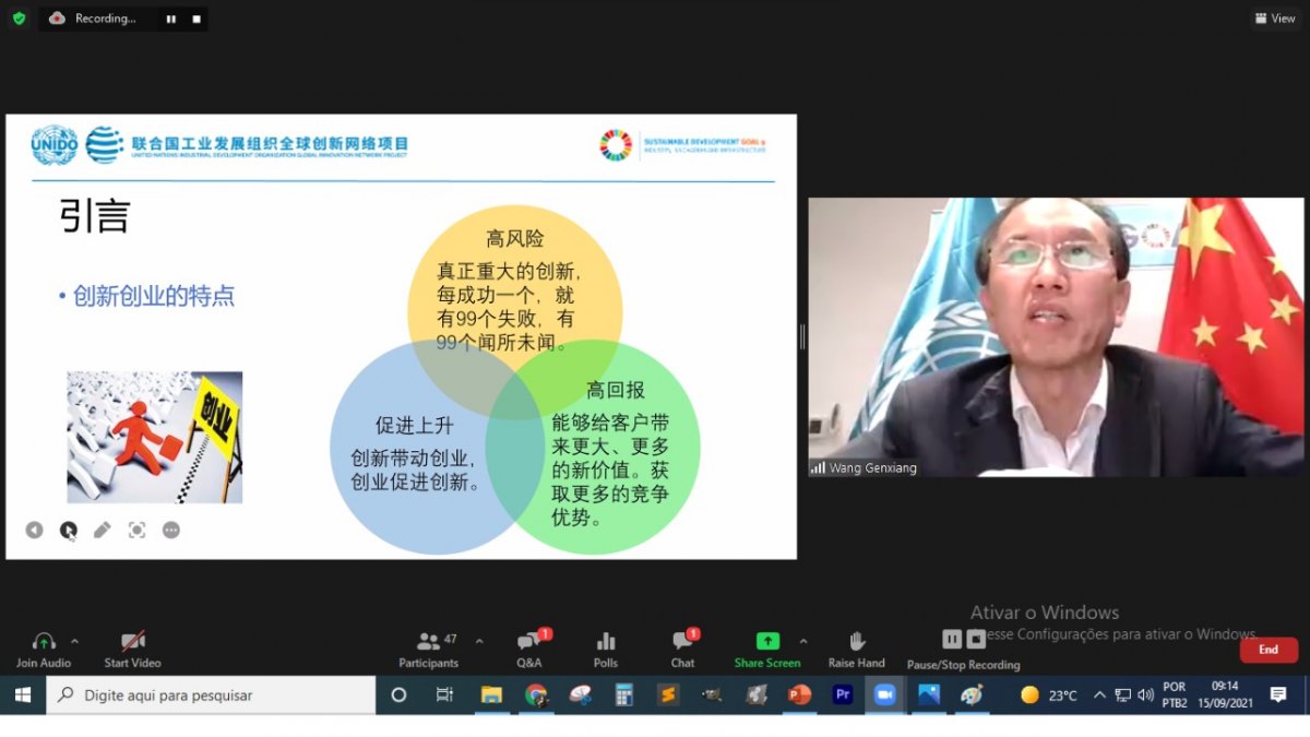 No segundo dia do Seminário, o Sr. Wang Genxiang – Diretor Unido Global Innovation Network Project Shanghai Global Science & Technology Innovation Centre-, abordou o tema “Políticas e Medidas do Governo Chinês de Incentivo ao Empreendedorismo e Inovação”, abordando as principais políticas de incentivo ao empreendedorismo e inovação do governo chinês.