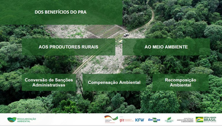 Segundo ele, o Programa de Regularização Ambiental traz benefícios aos produtores rurais e ao meio ambiente. "É através do PRA que o Brasil vai promover uma das maiores recuperações florestais da história, recuperando nascentes, beiras de rios e outras áreas tão importantes para o equilíbrio entre produção e preservação", disse Adrien.