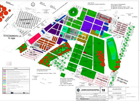 No recinto da feira, à direita (na cor verde) estão os espaços das vitrines