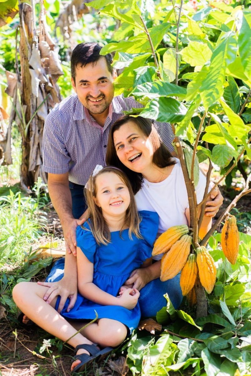 Quando o assunto é cacau, Cristiane Tiengo também é um exemplo de perseverança e dedicação. Ela faz parte da produção familiar do ‘Chocolate Tiengo’, uma fábrica de chocolates artesanais, composta por ela, o pai Deoclides Pires da Silva, a mãe Marilda Tiengo Silva e o marido Marcelo Medeiros. Para a produção a família conta com uma lavoura de 4.2 mil pés de cacaus clonais, plantados em uma propriedade rural em Jaru.