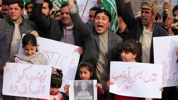 O corpo de Zainab foi encontrado em meio a um monte de lixo na última terça-feira, vários dias depois de ela desaparecer. Após ser abusada sexualmente, Zainab foi estrangulada, de acordo com a autópsia realizada.