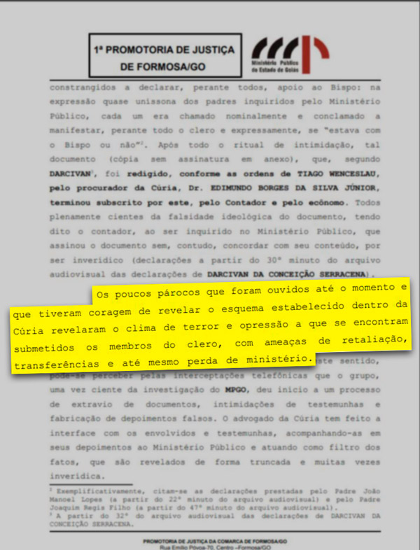 Na expressão quase uníssona dos padres inquiridos pelo Ministério Público, cada um era chamado nominalmente e conclamado a manifestar, perante todo o clero e expressamente, se ‘estava com o bispo ou não’."