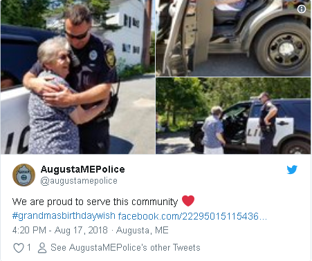No dia do seu aniversário os policiais foram até a casa da idosa, em Maine, e encaminharam ela até a prisão, com direito a algemas e viatura policial.Segundo o jornal Metro, a idosa ficou surpreendida com a chegada das autoridades.