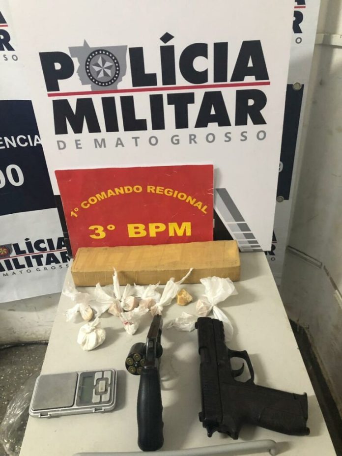 Na casa onde os três suspeitos estavam foram apreendidos um revólver calibre 38 com duas munições picotadas, uma arma falsa, uma barra de maconha, sete pedras de pasta-base de cocaína, duas trouxas de cocaína e uma balança de precisão.
