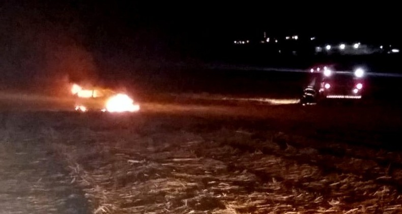 Carro do policial em chamas (Foto: Colaboração)