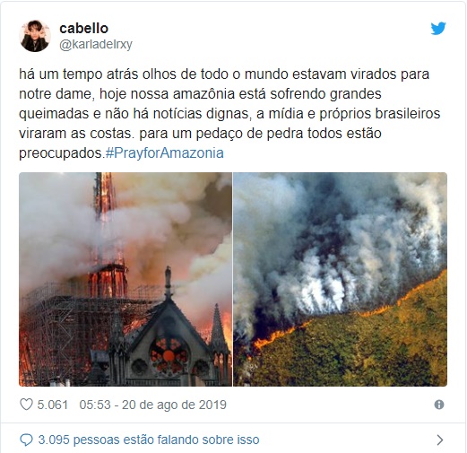 A Floresta Amazônica, também conhecida como o pulmão do mundo, está há dias sendo devorada por incêndios, o que está comovendo internautas pelas proporções das chamas.