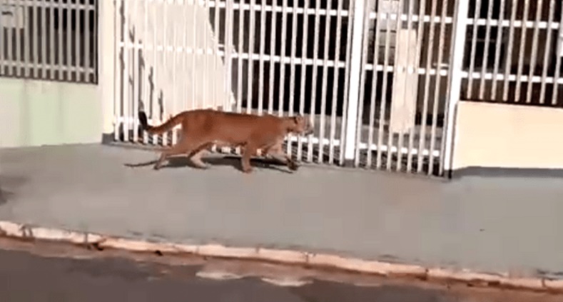 Segundo informações, o felino foi visto por um policial militar de folga, que pedia cuidado a pedestres e a moradores