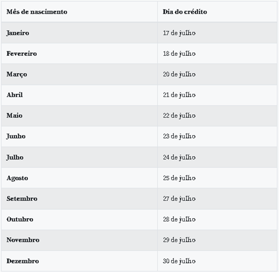 Crédito será liberado a partir de 17 de julho e saques em agosto