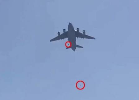 Na quarta-feira, passaram a circular nas redes sociais imagens feitas por afegãos agarrados à fuselagem de um cargueiro americano que partia do aeroporto internacional Hamid Karzai, com a pista tomada por civis. Quando o trem de pouso é recolhido, nenhuma parte da aeronave fica disponível para pessoas se agarrarem.