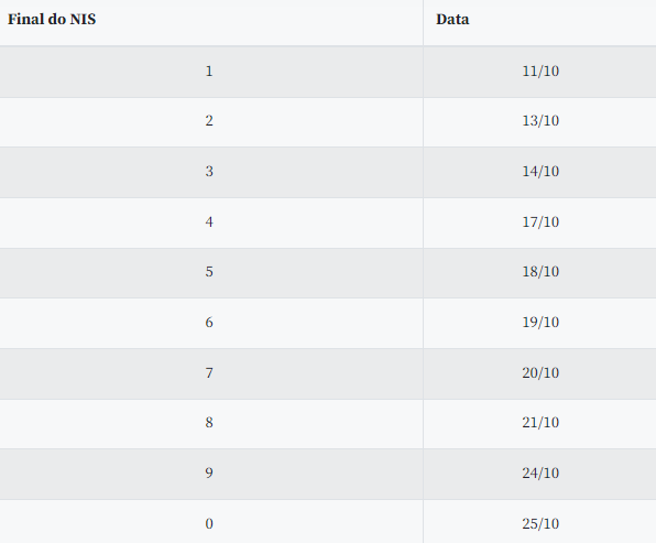Oficialmente, o calendário do Auxílio Brasil prevê o pagamento aos beneficiários de NIS 9 na segunda-feira (24). No entanto, desde setembro, os beneficiários que recebem o Auxílio Brasil às segundas-feiras poderão movimentar o dinheiro a partir do sábado anterior.