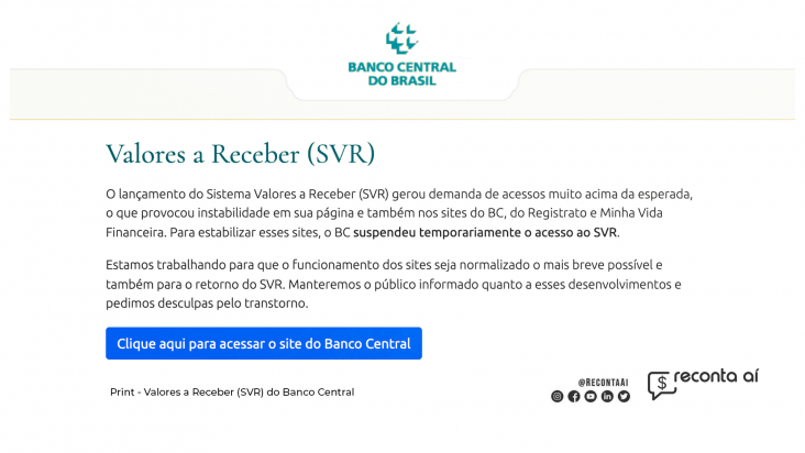 O BC também anunciou que voltará a receber dados das instituições em janeiro. A data de reabertura das consultas ao SVR ainda não está definida. No entanto, o órgão esclarece que uma instrução normativa editada em novembro obriga as instituições a encaminharem à autoridade monetária informações de valores esquecidos.