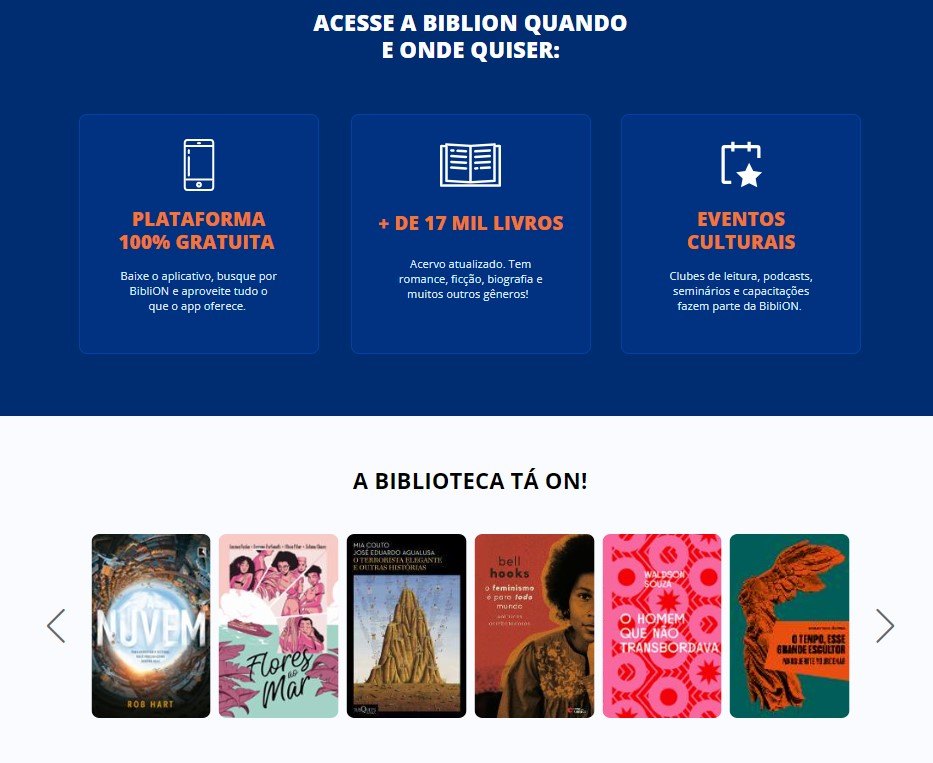 Lançada pela Secretaria de Cultura e Economia Criativa do Estado de São Paulo. A BibliON é uma biblioteca digital cem por cento gratuita para todos os cidadãos.