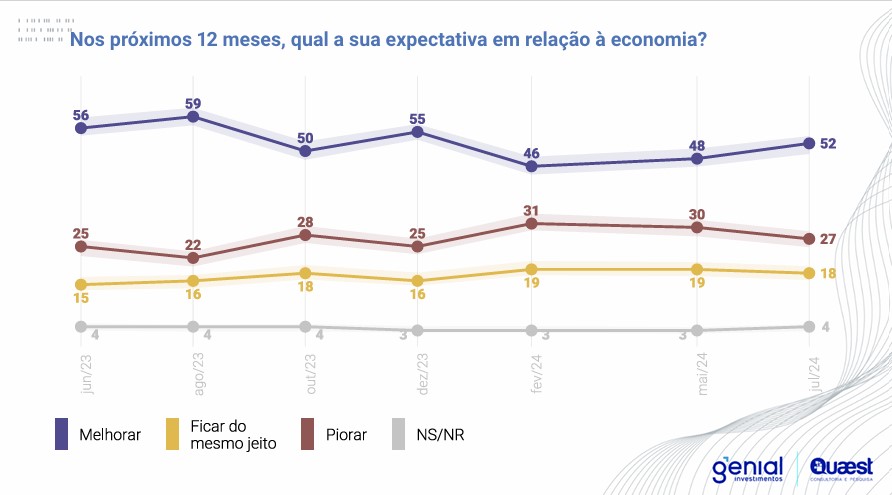 Apesar dos números, a expectativa para o futuro é positiva. 52% acreditam que a economia vai melhorar. 27% acham que vai piorar. E 18% acreditam que deve ficar do mesmo jeito.