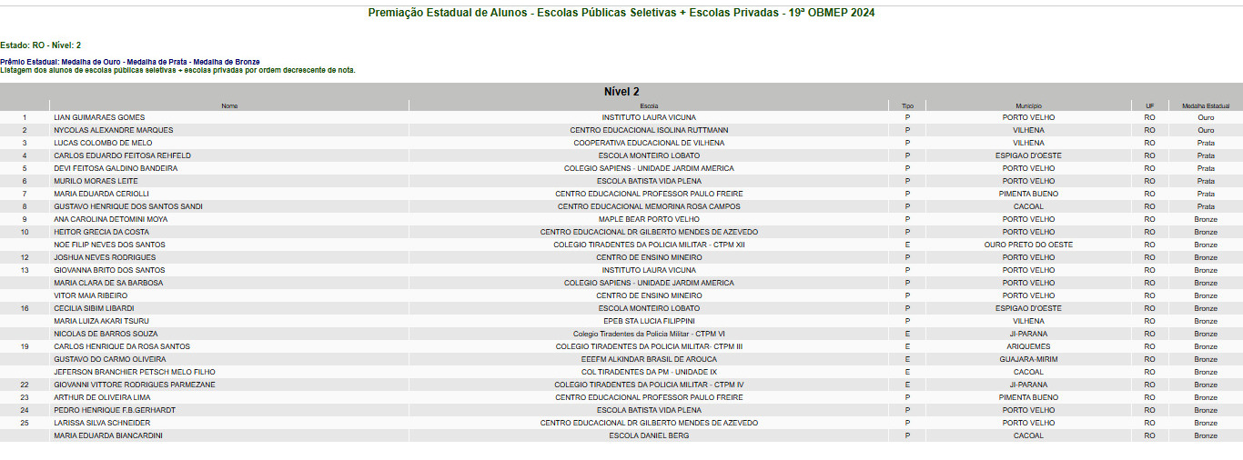 Veja quem são os super alunos de Rondônia na lista de cada um dos três níveis: