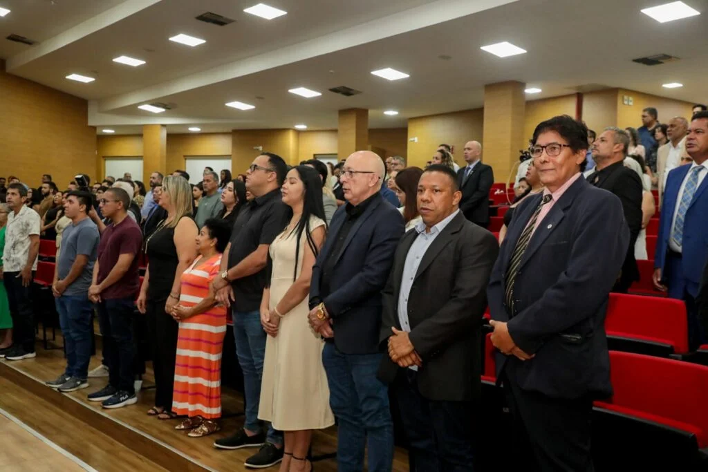 A mesa de honra do evento contou com a presença de figuras de grande relevância. O representante nacional da Federação Nacional dos Comunicadores do Brasil (FENACOM), Fábio Camilo, liderou os trabalhos ao lado de convidados como a Secretária de Comunicação do Governo de Rondônia, Rosângela Castelo, que representou o Governador Coronel Marcos Rocha. Também compuseram a mesa o Presidente da Assembleia Legislativa de Rondônia, Deputado Marcelo Cruz, o Deputado Estadual Luizinho Goebel, e o advogado Nelson Canedo, que representou o Prefeito eleito Léo Moraes.