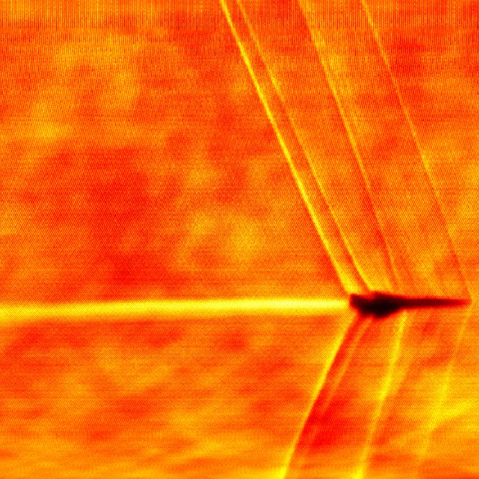 A foto, publicada pela empresa no X, foi registrada durante o segundo voo supersônico da aeronave. Para capturar esse momento, a NASA utilizou a técnica óptica Schlieren, que permite visualizar mudanças na densidade do ar ao redor do jato e a onda de choque gerada durante o voo.