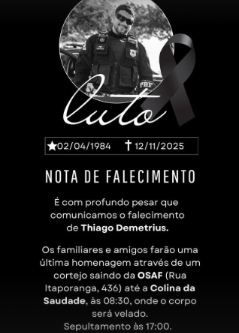 O policial rodoviário federal Thiago Demétrius da Silva Ribeiro, de 42 anos, morreu na noite desta quarta-feira (12) em Aracaju (SE), após sofrer um mal súbito durante um Teste de Aptidão Física (TAF) aplicado pela Polícia Militar de Sergipe. O falecimento foi confirmado pela família.