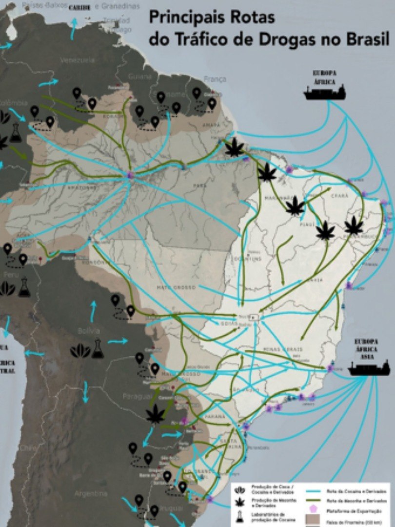 A Bolívia, assim como a Colômbia e o Peru, está entre os principais produtores mundiais de cocaína. Em 2023, os bolivianos registraram um aumento de 62% nas apreensões, enquanto a Colômbia confiscou 739,5 toneladas, muitas delas em águas internacionais. Grande parte dessa droga cruza o território brasileiro antes de seguir para outros continentes.