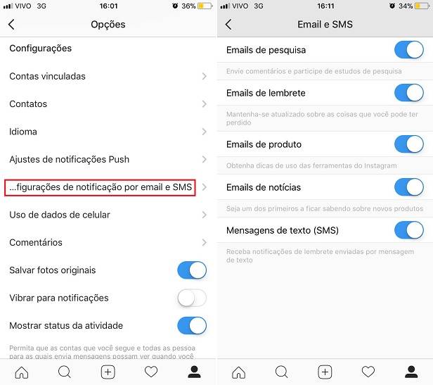 *Você também pode entrar em “Configurações de notificação por e-mail e SMS” e selecionar quando o Instagram pode entrar em contato com você.