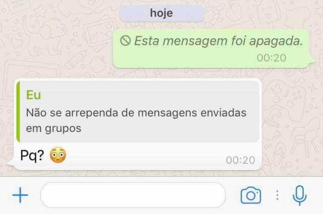 Este erro não afeta tanto conversas de duas pessoas. Isso por que quem responde por cima da sua mensagem já leu o conteúdo - ou seja, é tarde demais para se arrepender.