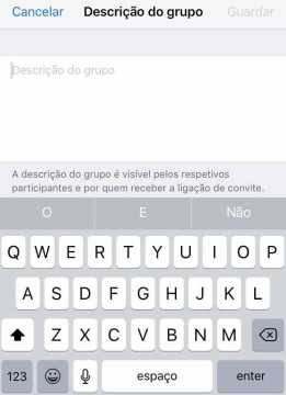 1. Nos detalhes do grupo, selecione "Adicionar descrição do grupo". Em seguida, será aberto um campo em uma nova tela, para que você possa digitar uma descrição.